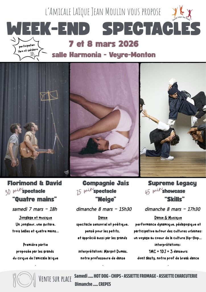 Venez nombreux pour soutenir nos artistes, le spectacle vivant et l’Amicale laïque.